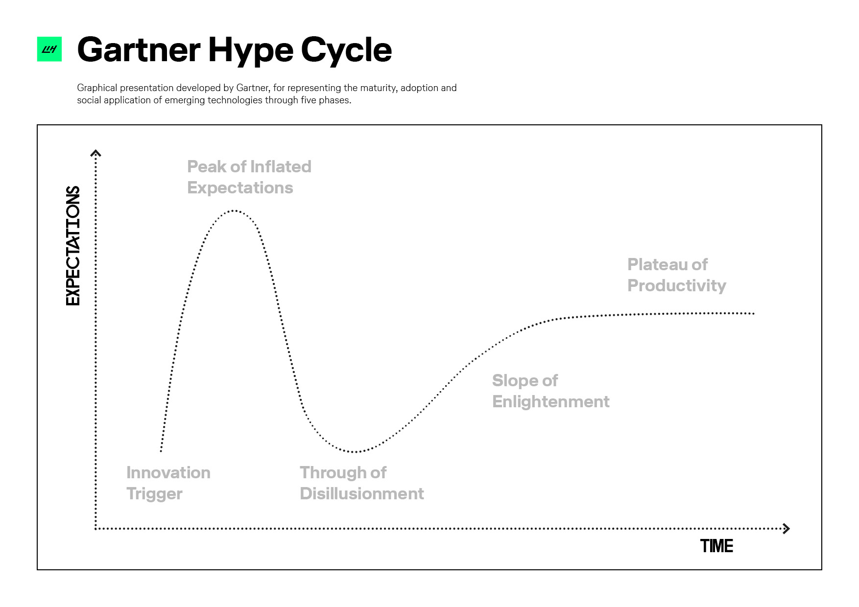 To better understand the innovative technologies of the future, the Gartner Hype Cycle provides a graphical representation of the use and resolution of new technology opportunities. This method gives you an overview of how a technology will develop over time and how its correct use and management in the right context can be relevant to your business goals.